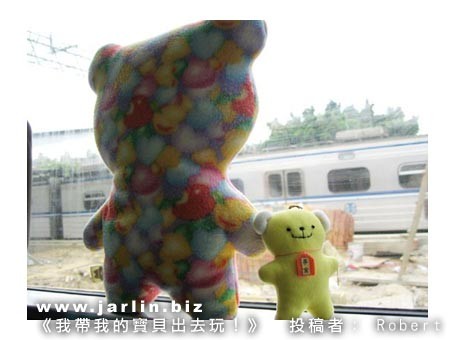 這天我帶著我的寶貝跟這兩隻熊熊要去內灣玩,這是剛搭上內灣線的柴油列車時拍的。