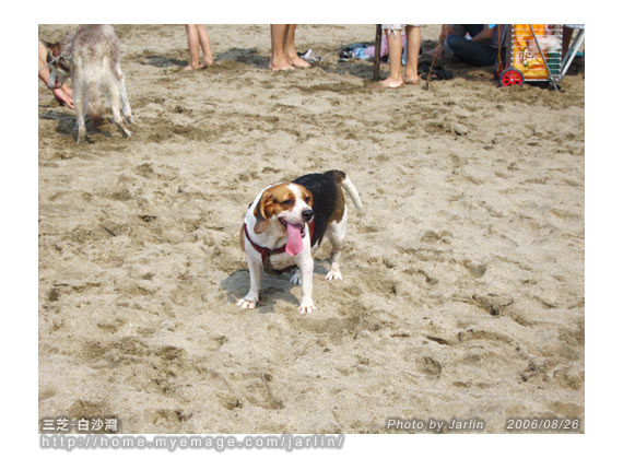 超胖的米格魯小姐。一直被主人丟到海裡,她就死命地游回來。