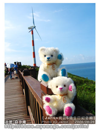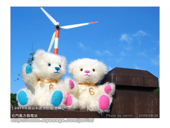 熊熊也要跟風車合照~ (藍色小熊像是帶了竹蜻蜓)