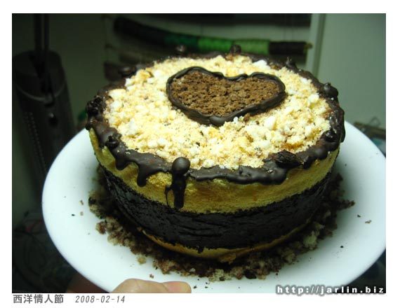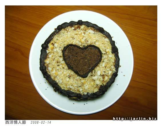 昨天西洋情人節,傍晚花了一點時間做了這個巧克力愛心蛋糕,還蠻好玩的!
