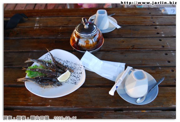 入園門票每人100元,可以折抵餐點費用,我們點了茶跟現在季節限定的飛魚乾。