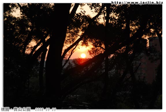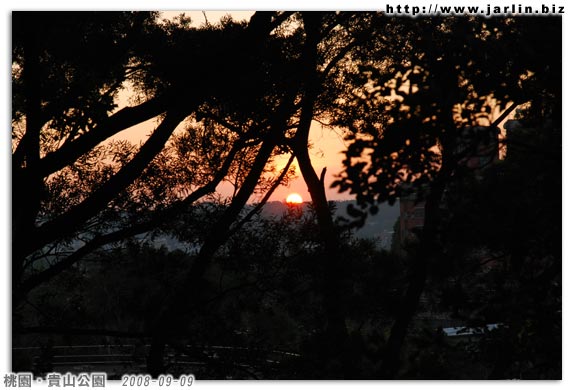 在欣賞莊嚴的觀音像的當時,太陽也漸漸變紅,落向西邊的山。紅通通的太陽光芒還是很刺眼,只是照片沒辦法呈現出它實際上的紅色。