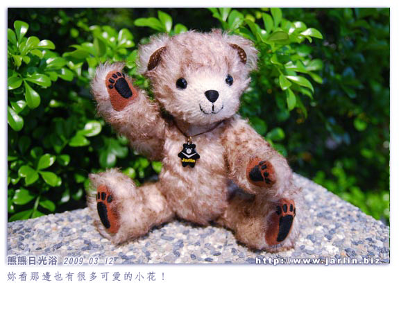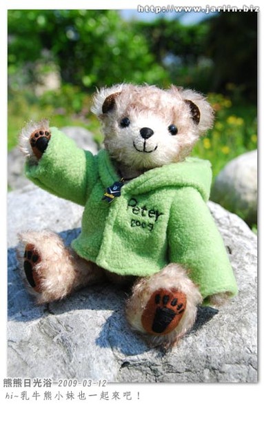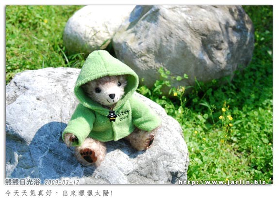 早上看到外面有舒服的陽光,趕緊把上個週末完工的兩件熊熊拿到庭院拍拍照