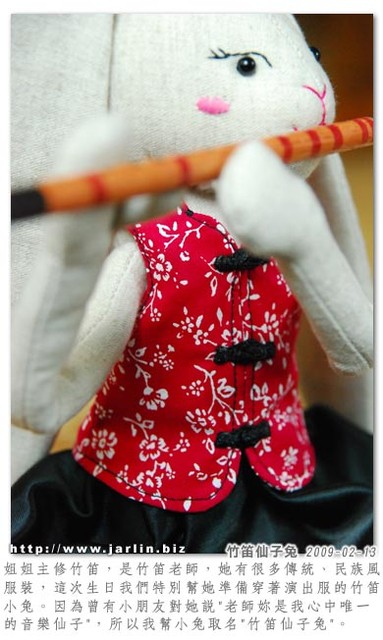 姐姐很喜歡兔娃娃,所以我們幫她做的是小兔子,姐姐的眼睛也是有一點鳳眼,我們覺得兔兔的眼神跟姐姐演奏時的神情很像。
