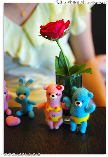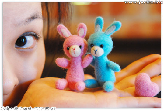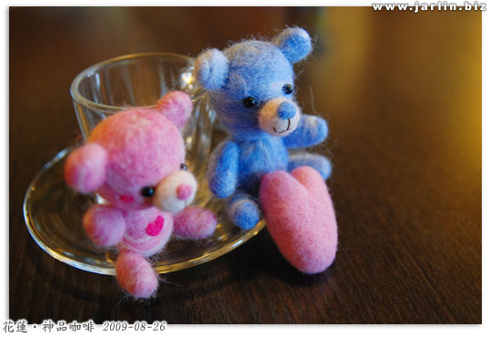 我第一次用羊毛氈戳出來的情人對熊。混了不同色的羊毛。