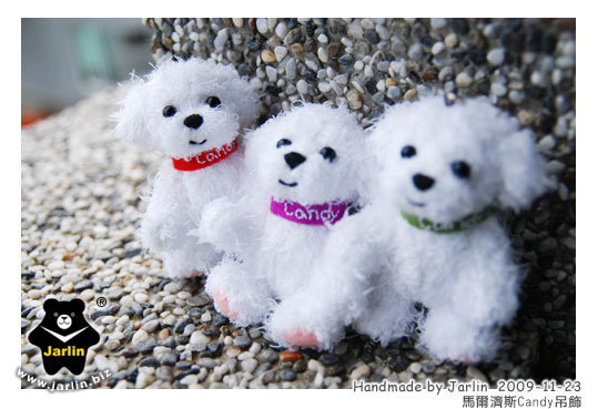 四腳站立的姿勢 & 趴著的姿勢,Jarlin再幫牠們搭配上可愛顏色的領巾。其實四腳站立的分身還有重要的使命,牠的背上有拉鍊口袋,是要裝著Candy的骨灰用的。