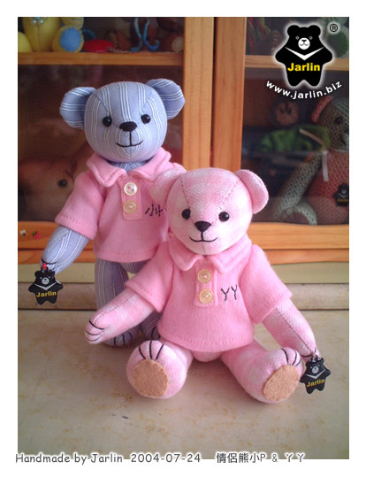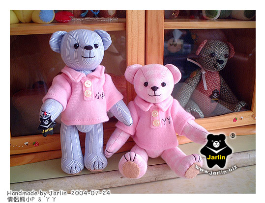 這組情侶熊作品是六年前ㄚㄚ訂製的,穿著粉紅POLO衫的情侶熊。