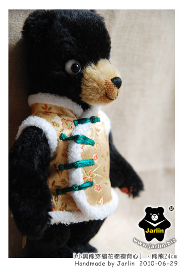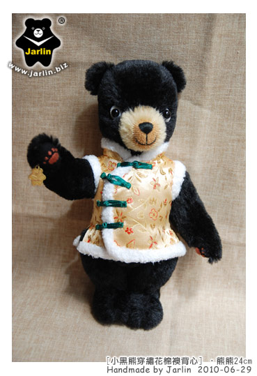前兩個月有之前訂製這款熊熊的客人再請我幫她的小黑熊量身訂製了兩件新衣服,就是這篇照片中的[繡花棉襖背心]以及[西裝背心]