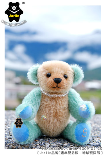 地球是我們的家園,也是需要全體人類一起疼愛與呵護的寶貝,熊熊睜著無辜的大眼,祈求愛憐。照例要在週年紀念熊熊身上標示年份,腳底繡的 9 剛好呼應我們期盼地球的生命永久不斷。身為地球的一份子,我們能做什麼讓地球可以長久美麗、永續經營,一直是我們必須共同努力的課題。