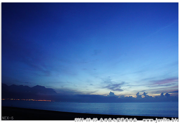 隆隆的海浪拍打在岸邊的聲音聲讓人有點害怕,就我們兩人坐在海岸的石階上等日出。天還黑時很幸運地見到兩道流星劃過...。問我有沒有許願呢?我好像沒那麼浪漫....我知道跟流星許願是沒有用的啊!!
