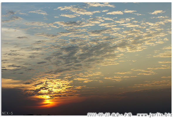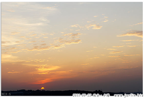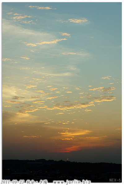 剩下一小點的紅,每次太陽隱沒之後,天上的雲會格外地艷麗... 直到黑幕整個蓋上...