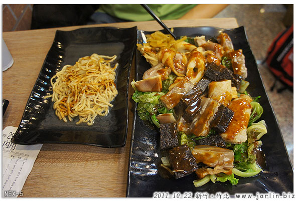 離開交大校園後,送姐姐去竹北搭高鐵,我們繞道竹北縣政府附近餐廳很多那一帶要覓食,本來還盤算著要吃哪一間好?繞來繞去繞了快半個小時,找不到一個停車位,繞到都要生氣了...,已經到有的吃就好的地步。最後停到比較遠的地方去,有一個大大的停車場,旁邊剛好有一家生意很好的滷味店,外帶內用都要等好一陣子呢~
