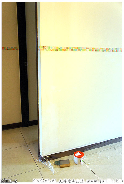 顏色確定後又不知道過了多少的天數,在除夕的前一天,也就是週六,我終於動工漆上油漆了!本來這天是預計打掃後有時間再刷油漆,但想著要擱著這片牆迎接新年,又不太甘心,於是牆壁變成我這天的工作重點了。