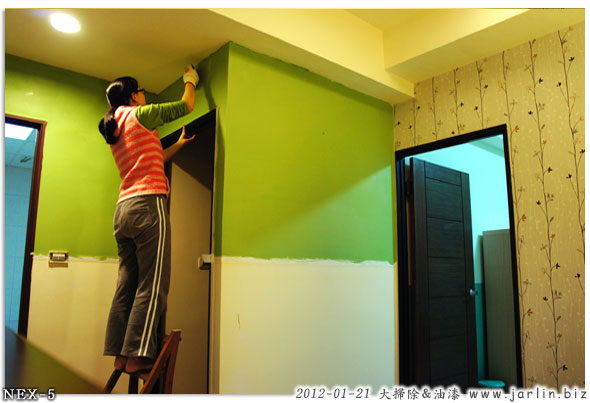 上半部的漆手要舉高高,漆起來比較累,而且刷沒幾下就得挪動梯子,所以整個要花費的時間會比較多。