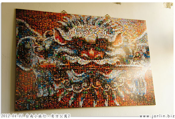 一幅很大的劍獅掛像,是用許多台南當地特色照片以蒙太奇手法拼出來的。