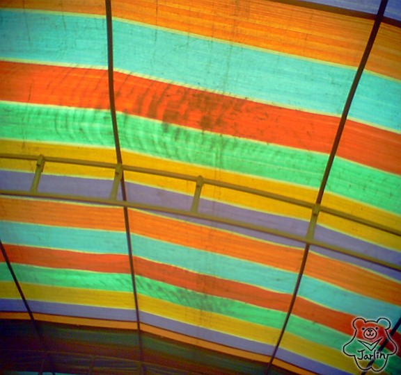 相機往上拍攝彩色棚子