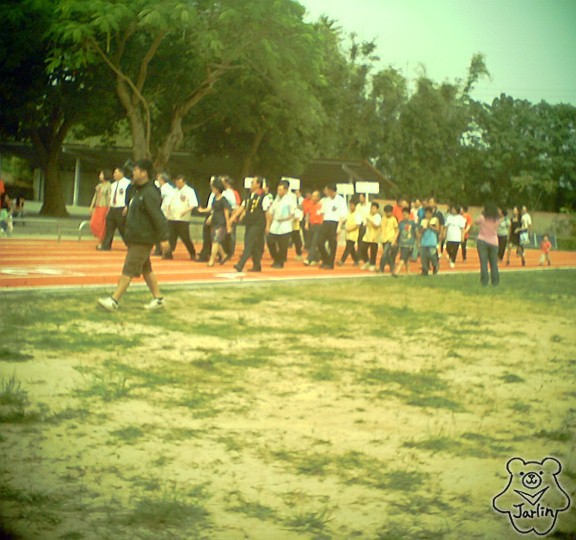 這是跑道啟用典禮的一環 [ 大家一起走操場一圈 ]
