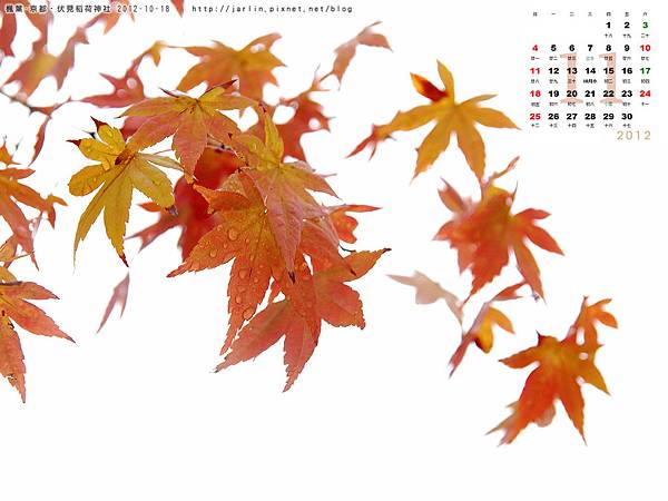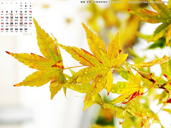 在伏見稻荷神社前,見到最多已經轉色的楓葉,多麼開心!