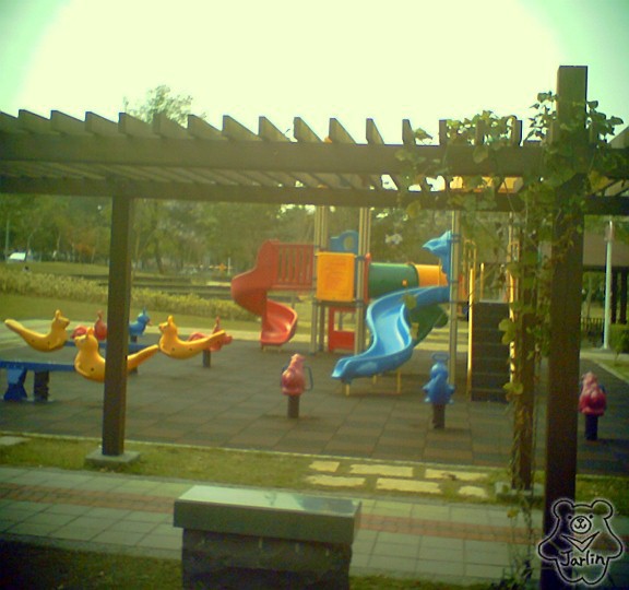 尺寸不算小的公園,小孩的遊樂設施,也有一些大人的健身器材,還有不少可愛的植物