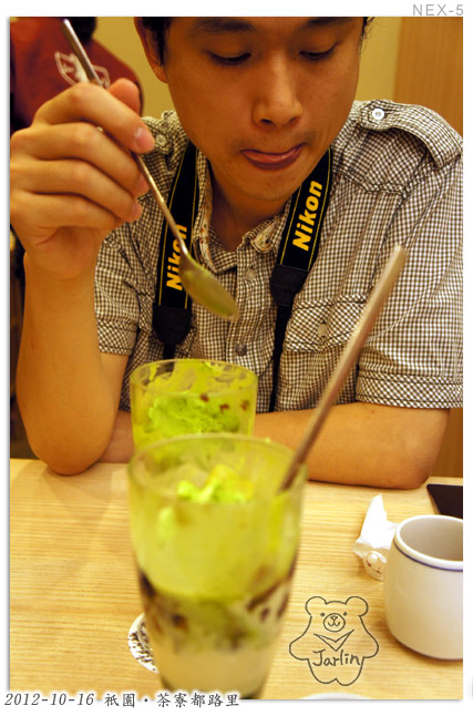 我遊說他這可是來京都必吃的甜點店,我們還不用排隊就可以吃到,若只喝杯熱茶也太枉然吧 ><