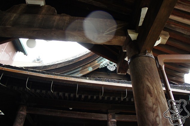 地板鋪了410多塊柏木板,一整個都是木造建築,可以從這裡欣賞京都的市區風景