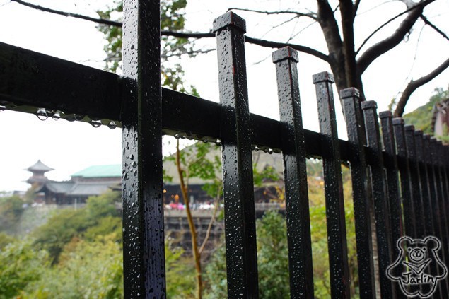 音羽之瀑是從清水寺本堂垂下的三條瀑布。從瀑布方向來看左邊是"學問成就",中央是"戀愛成就",右邊是"長壽健康",這三條瀑布都是可以飲用的,其實原本的意思從左起分別是"慈悲""利得""智慧",但是作為觀光用才有了前述功效的說法,而信與不信則由你來決定。