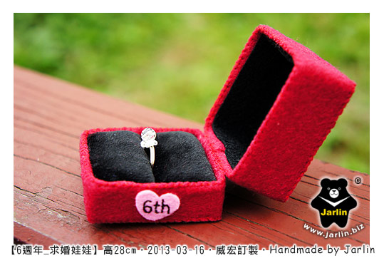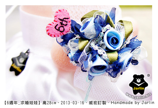 延續每一年的週年娃娃,兩個娃娃都會找適合的地方繡上"週年數字",今年是"6th"