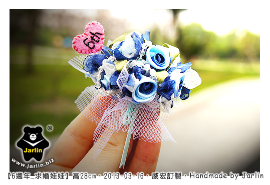 代表幸福的藍色捧花也是 Jarlin 製作的