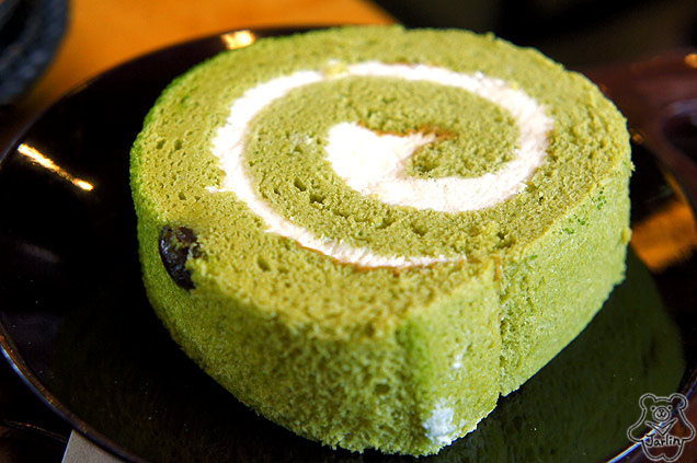 抹茶蛋糕捲~~ 奶油捲得蠻漂亮的(常常看到這種蛋糕捲裡頭的奶油捲得不太漂亮)