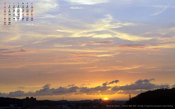 八月的天空很精彩,這個月一樣以在我們家窗戶可以看到的日落為主題