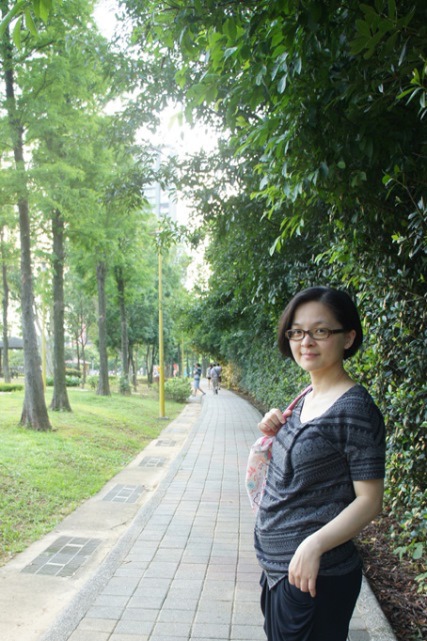 我們只繞著公園走了一大圈不敢走太多,因為上個禮拜日去走操場五圈後發生了不適的狀況,兩個人都被嚇到,沒想到孕期中從沒害喜過的我只是去早個操場而已竟然就撐不住...。隔天還趕緊去看醫生,還好後來沒有甚麼問題了。