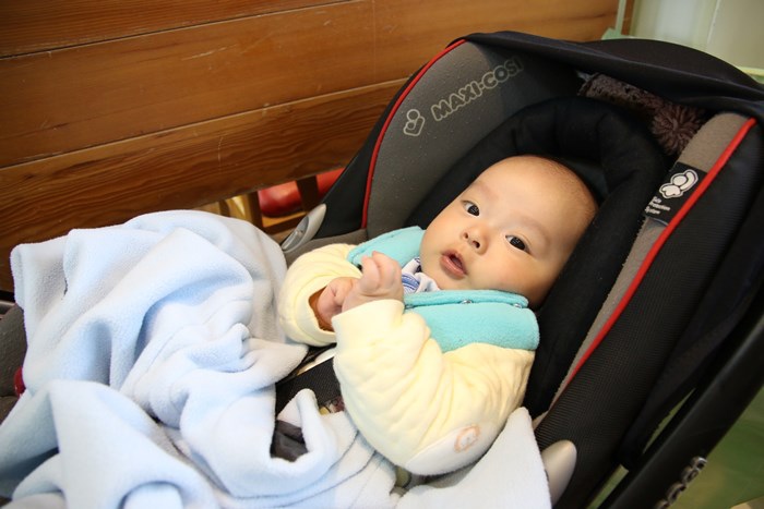 小范糰在我們坐完月子回家後,第一次的外宿經驗是在要回花蓮家過年之前,