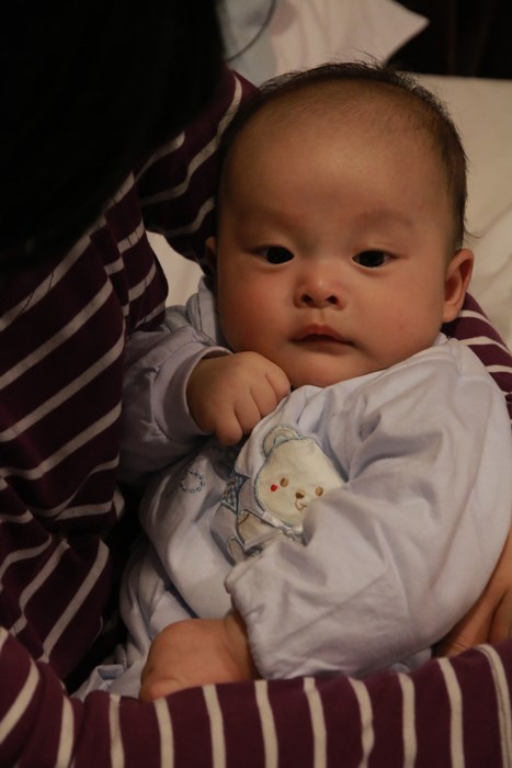 這時剛滿四個月的他,後腦杓的"姑路"有點明顯,只能期待他的頭髮快快變長、變濃密囉~