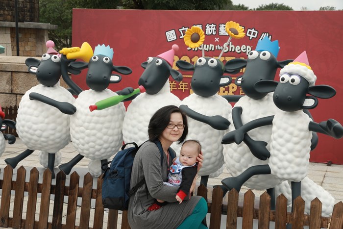 因為要送走馬年迎接羊年了,園區裡處處看得到迎新春的跳跳羊,我們也來應景拍個照吧!
