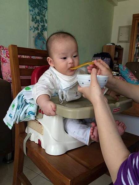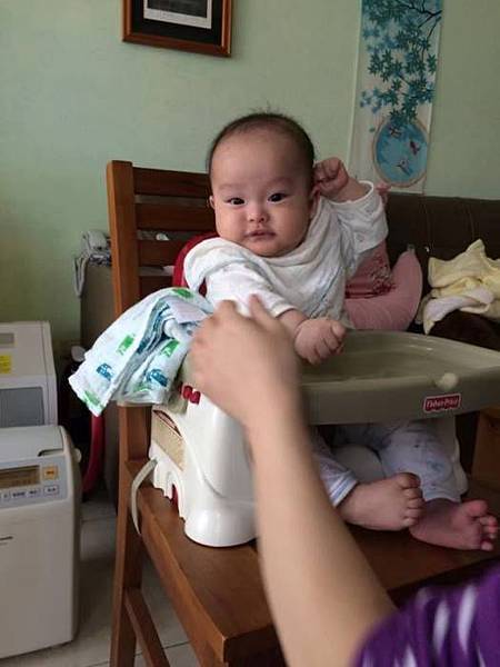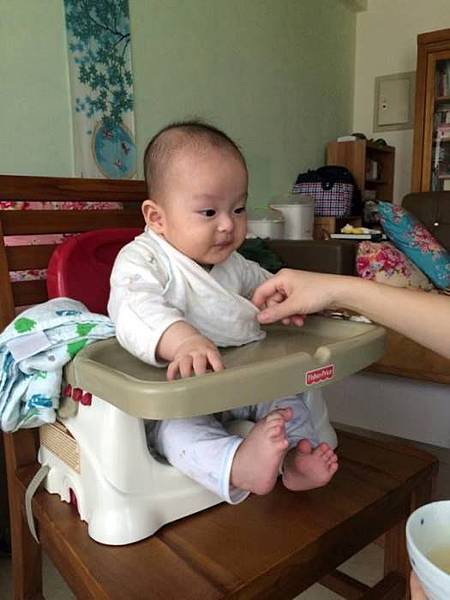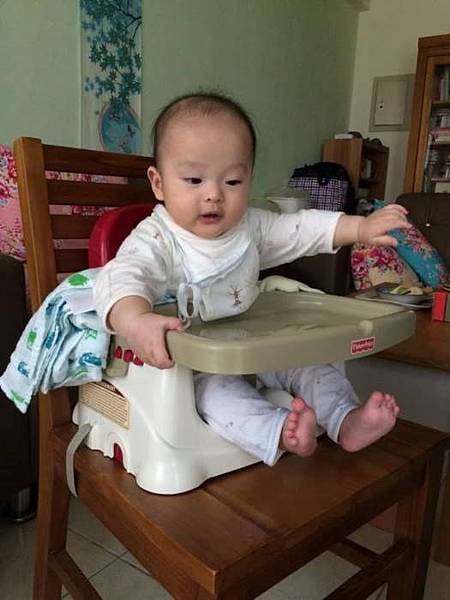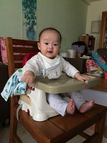 本來住八里的好友虹虹老師早就送我們實木的寶寶餐椅,但因為現在快滿六個月的小范糰要吃副食品了,目前他還沒辦法自己坐,所以還沒辦法使用那張木頭椅子,還是先買了四個月起就可以開始坐的費雪攜帶型餐椅,一方面也是考量可以攜帶,出門用餐或者回花蓮家或者外公外婆家都可以使用。