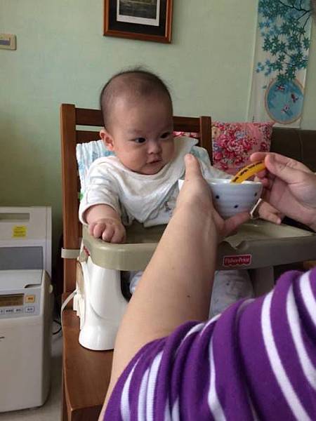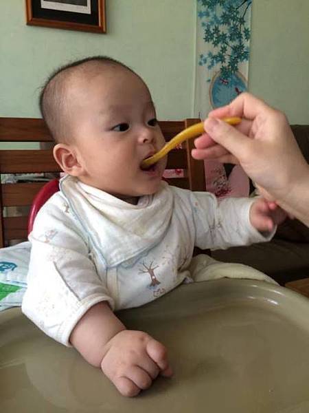 小范糰在接近滿五個月的時候開始嘗試吃副食品,剛開始吃米糊吃的不太習慣,常常吃幾口就不吃了。後來又開始嘗試加了南瓜、蘋果、芭樂的米糊,最近吃的接受度有越來越好,昨天甚至一次就吃了超過100ml的蘋果米糊,吃完還不過癮的樣子! 吃完後還是吸奶吸了一陣子才滿足了。