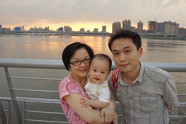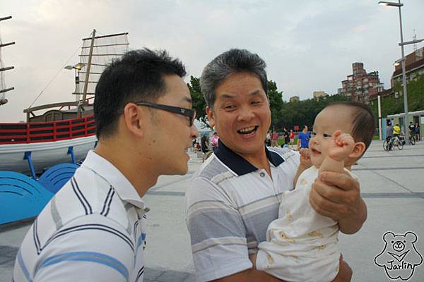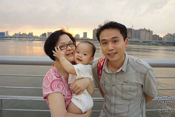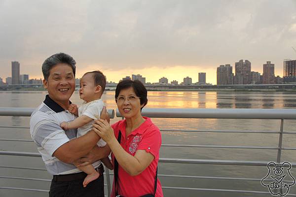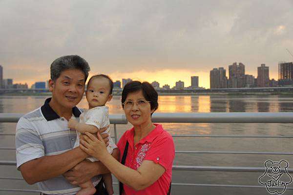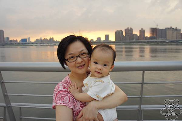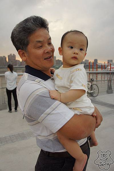 晚餐前我們先到大稻埕碼頭看夕陽,從桃園出發時還擔心天氣,因為最近台北傍晚常常下大雨。小范糰到陌生的環境都會表情比較嚴肅地一直觀望,先熟悉一下。