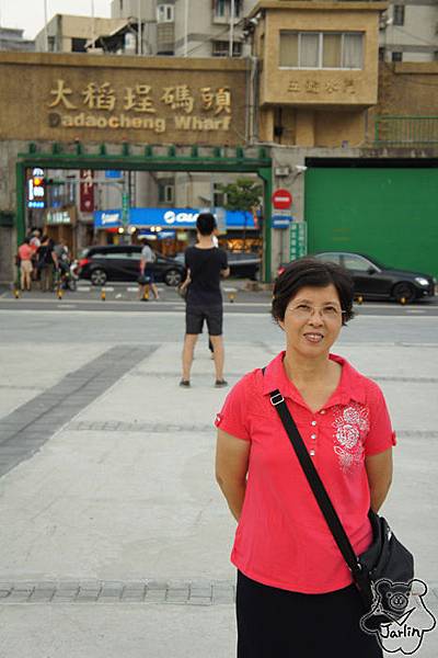 媽媽說要跟大稻埕碼頭的招牌合照。