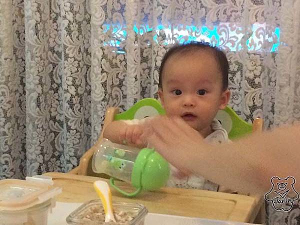 小范糰在外面吃飯可能因為環境陌生,好玩又好奇,只顧玩的情況下常常都沒辦法把正常的量吃完,但又想喝奶,所以只好再餵他喝奶了。