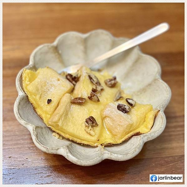 因為用奶油煎,底部有焦糖口感與香味。