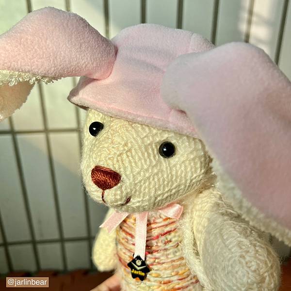 我縫製的毛線熊熊,眼睛裡有朝陽照射的圓點亮晶晶。