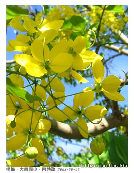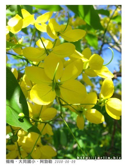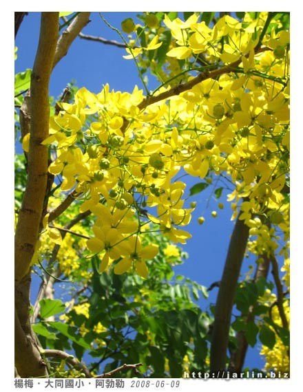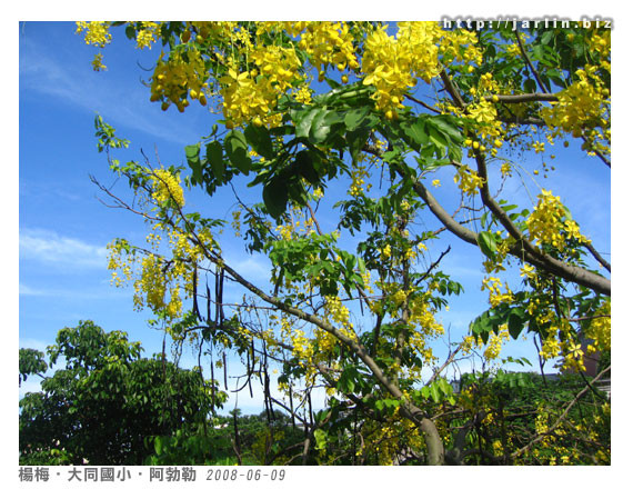 回來時還不到早上九點,經過小學時再來拍拍陽光下的阿勃勒。